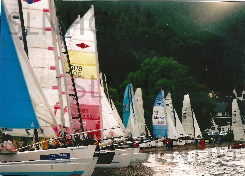 A Loch Ness Yacht race involving mainly boats from England . The contestants camped in field nearest Dores beach ,then the next day sailed up Loch Ness from Dores to Fort Augustus then raced backed to Dores it was a one of event Photograph courtesy of Alistair Grant