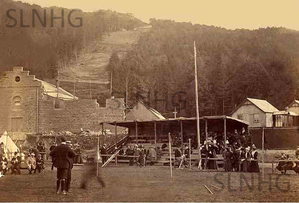 Circa 1897. Sports day at the Foyers factory? The ghostly figure left of centre is an indication of the exposure time required to take photographs in those far gone days.